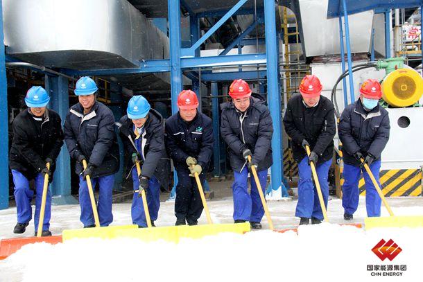 圖為煤制油煤液化生產中心員工在頂峰除雪保安全。