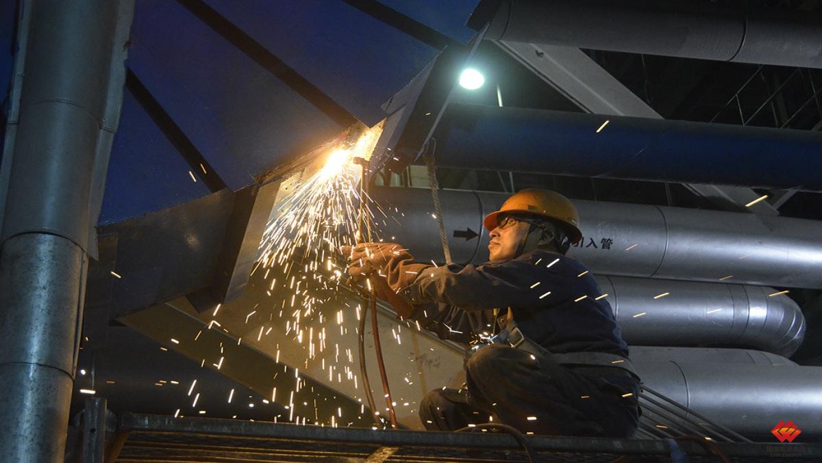 圖為該廠鍋爐焊工加緊進行一次風箱的恢復性焊接。