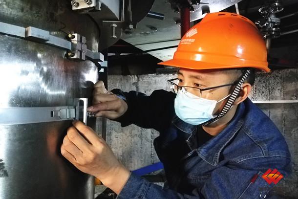 圖為該公司青年員工認真檢查水力發電機組齒盤測速裝置并進行消缺