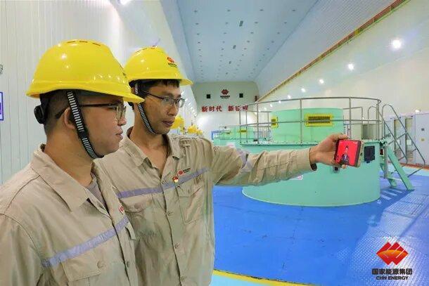 海南大廣壩水電廠運行值班員在發(fā)電機層通過手機觀看中國共產黨第二十次全國代表大會開幕會。
