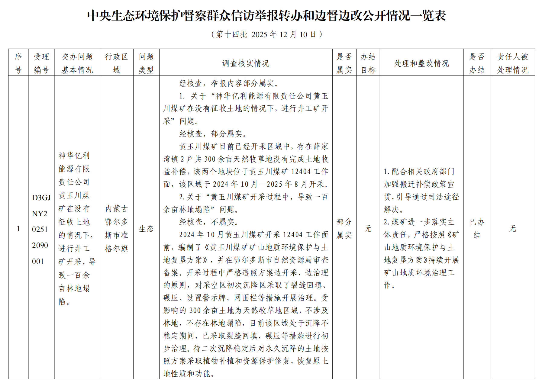 中央生態環境保護督察群眾信訪舉報轉辦和邊督邊改公開情況一覽表(第十四批 2025年12月10日)