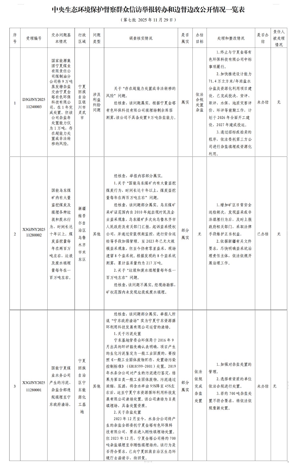 中央生態環境保護督察群眾信訪舉報轉辦和邊督邊改公開情況一覽表(第七批 2025年11月29日)