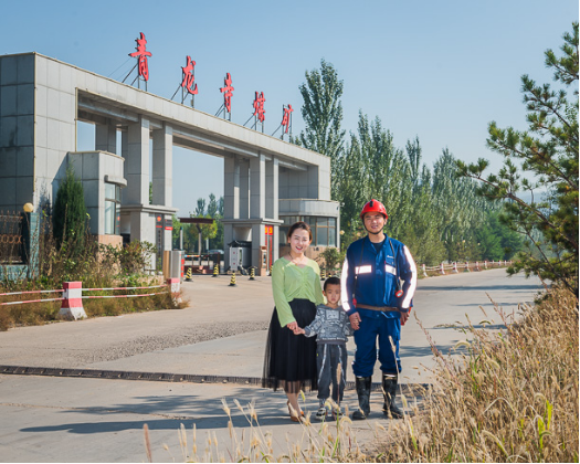 國家能源集團榆神能源礦工 賈建龍(右)一家。