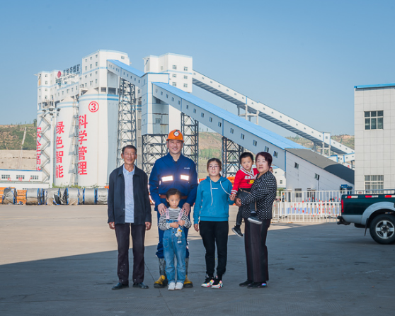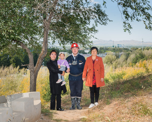 國家能源集團榆神能源礦工 王鵬(右)一家。