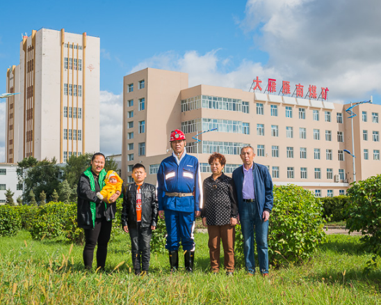 國家能源集團大雁公司礦工 朱世友(右一)一家,祖孫三代均為礦工。