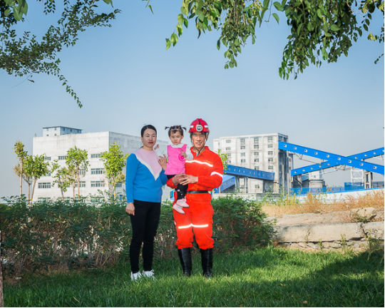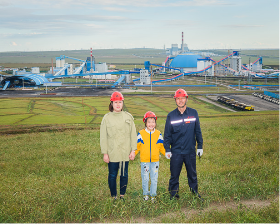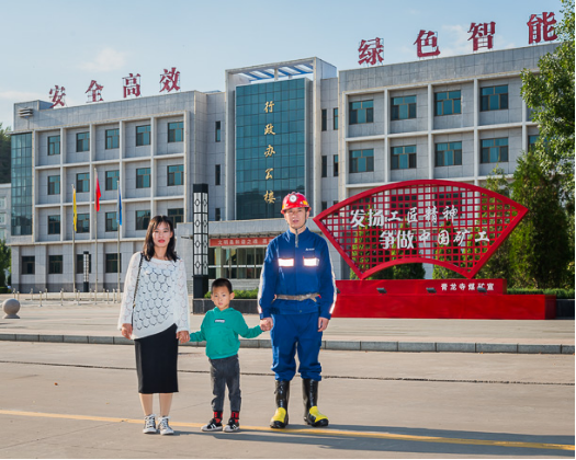 國家能源集團神東煤炭礦工 冀宏波(左)一家。