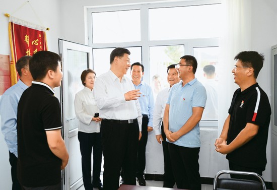 2019年7月15日至16日,中共中央總書記、國家主席、中央軍委主席習近平在內蒙古考察并指導開展“不忘初心、牢記使命”主題教育。這是15日下午,習近平在赤峰市喀喇沁旗河南街道馬鞍山村黨群服務中心了解基層黨建、民族團結和鄉村振興情況。 新華社記者 謝環馳/攝
