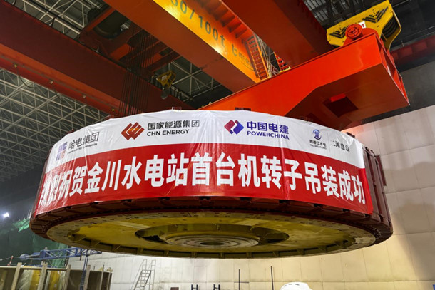 離投產發電目標越來越近了,如何高質量、高效率開展機組、主變等設備安裝,該公司機電物資黨支部用行動給出了答案。金川水電站機組轉子起吊總重約570噸,是機組最重的起吊設備,也是機電安裝工程最為復雜的工序之一,在首臺機組——4號機組吊裝中,該黨支部把主題黨日活動搬到轉子吊裝現場,與參建單位黨支部聚力攻堅,對吊裝流程、安全監控、應急措施等進行詳細部署,明確人員分工及職責,高標準完成了首臺轉子吊裝這一標志性節點,較集團目標提前75天告捷。