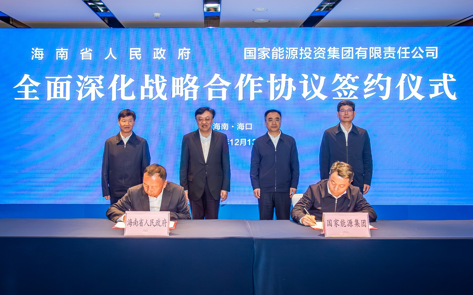 12月13日,國家能源集團與海南省政府在海口簽署全面深化戰(zhàn)略合作協(xié)議。國家能源集團黨組書記、董事長鄒磊,總經(jīng)理、黨組副書記馮來法在??诎輹D鲜∥瘯涶T飛,省委副書記、省長劉小明,并共同見證簽約。國家能源集團黨組成員、副總經(jīng)理傅振邦,海南省委常委、常務(wù)副省長巴特爾代表雙方簽約。