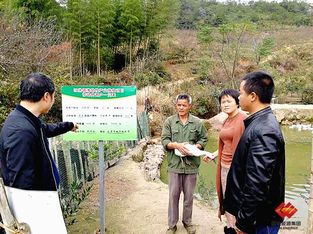 圖為該公司駐村干部檢查激勵性扶貧項目連城白鶩鴨養殖情況