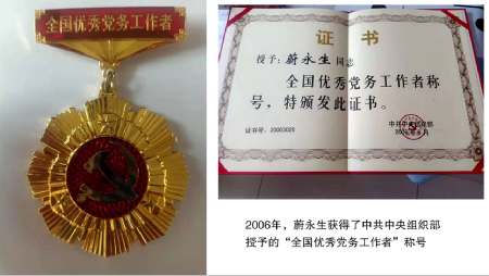 2006年,是蔚永生人生中的高光時(shí)刻,那一年,他獲得了中共中央組織部授予的“全國(guó)優(yōu)秀黨務(wù)工作者”稱號(hào),受到了時(shí)任中共中央總書(shū)記胡錦濤的接見(jiàn),他也是烏海市建市以來(lái)第一個(gè)獲此殊榮的人。