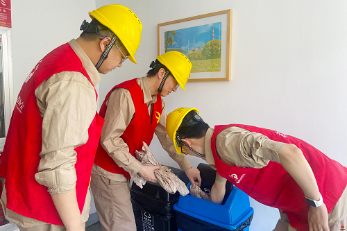 6月7日,浙江公司北侖電廠運行第四團小組的團員青年,來到廠區的各個垃圾投放點,進行垃圾分類檢查。隨著黨史學習教育的持續推進,該廠團委發動團員青年辦實事,已完成5項實事,累計惠及人數500多人次。