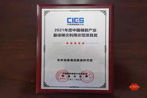 The “2021 China Energy Storage Industry’s Best Cascade Utilization Demonstration Project” award granted to the National Institute of Clean-and-Low-Carbon Energy.
