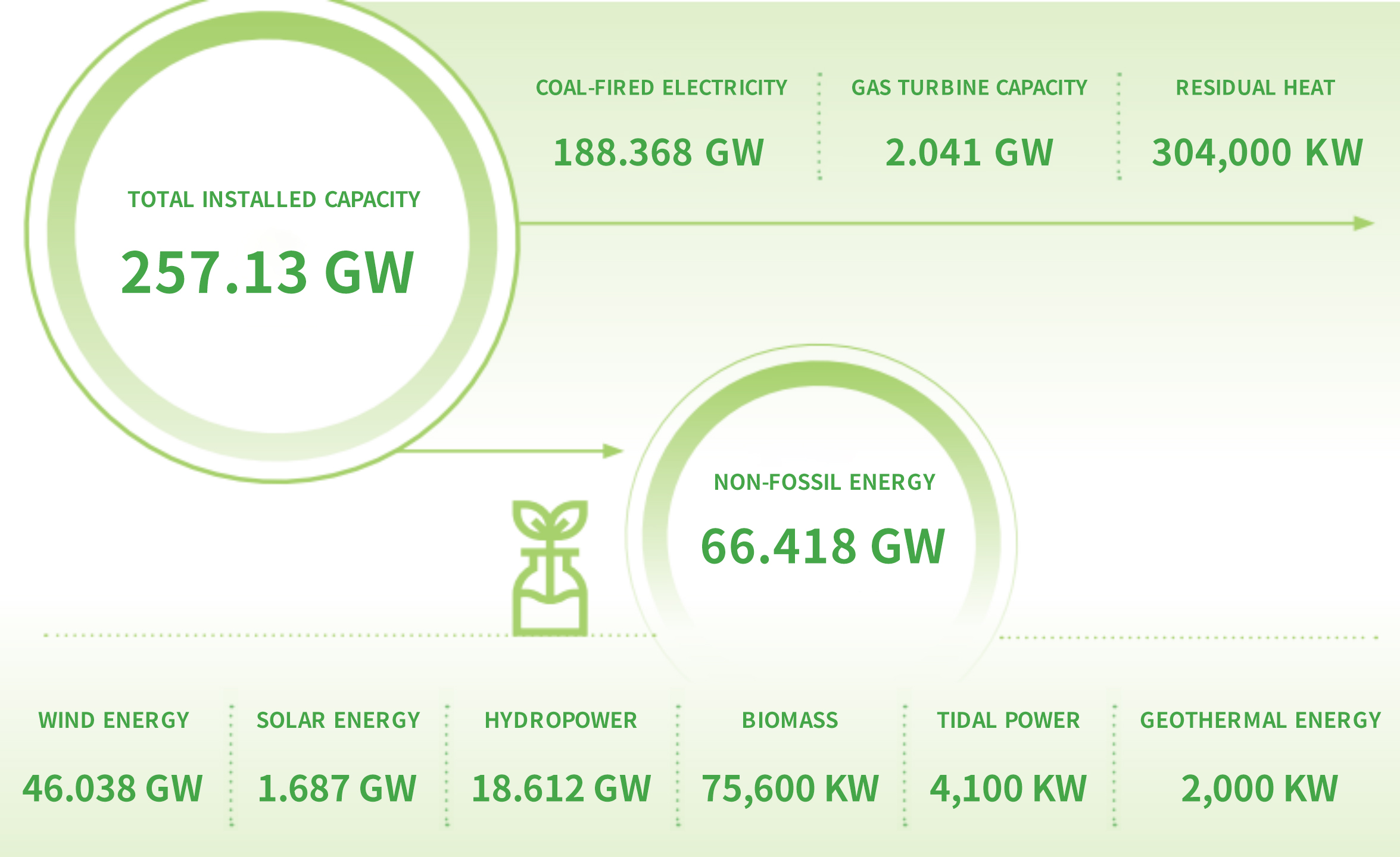 China Energy’s power generation from fossil energy and non-fossil energy sources (including wind power, solar power, hydropower, biomass, tidal power, and geothermal energy):